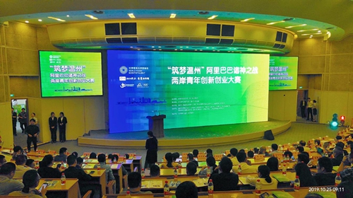 10月25日上午,溫州首屆2019世界青年科學(xué)家峰會(huì),“筑夢溫州”阿里巴巴“諸神之戰(zhàn)”兩岸青年創(chuàng)新創(chuàng)業(yè)大賽在溫州市人民大會(huì)堂舉行,兩岸青年攜20個(gè)創(chuàng)新創(chuàng)業(yè)項(xiàng)目赴溫參加大賽,活動(dòng)設(shè)有兩岸青年創(chuàng)新創(chuàng)業(yè)項(xiàng)目路演、產(chǎn)業(yè)對(duì)接、兩岸青創(chuàng)論壇等環(huán)節(jié)。