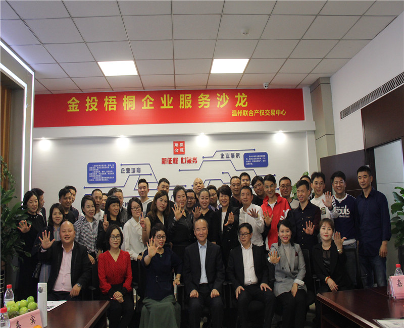 11月24日下午,溫州聯(lián)合產(chǎn)權(quán)交易中心有限公司與溫州卡耐基口才培訓學校聯(lián)合舉辦了2019第九期金投梧桐企業(yè)服務(wù)沙龍——“茶話會.話商機”。本次活動聚集了各界行業(yè)40多位企業(yè)家、創(chuàng)業(yè)家以及知名專家,以“2019年溫州企業(yè)面臨五大困境”為主題,通過嘉賓分享、專家交流互動的形式,幫助溫州企業(yè)解決發(fā)展中遇到的困境與瓶頸,引領(lǐng)企業(yè)創(chuàng)新發(fā)展。
